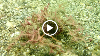 De 2e dag was het weeral bingo, en hoe! Het leek wel National Geographic! Onze eerste blue ring octopus maakte zijn opwachting. Eerst zat hij verstopt in een schelp, nadien ging hij op wandel (met ons in zijn zog) tot er een kleinere versie opdaagde, het mannetje. Al snel hingen ze in elkaar en begonnen ze te paren. Toen merkten we ook pas op dat het vrouwtje eitjes bij haar had! Dus onze eerste blauwring-octopus, met eitjes en al parend, tja, dat maak je niet dikwijls mee. Onze week kon niet meer stuk! Blijkbaar kunnen ze een 2-tal uren doorgaan met paren, zolang hebben we helaas het spektakel niet kunnen bijwonen en naar het schijnt sterft op het einde het mannetje. Als dat geen mooi einde van je leven is!