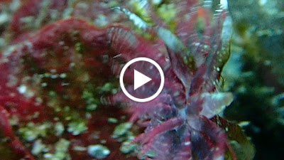 Op de 3e van de lijst, de flamboyant cuttlefish hebben we heel wat langer moeten wachten. Eerst hebben we zijn eitjes gezien en vlak daarbij een baby versie. Superschattig.
